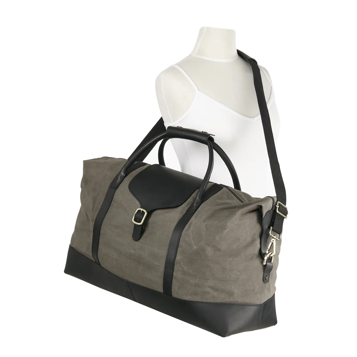 Waxed Canvas & Leather Buckle Weekender - Grey